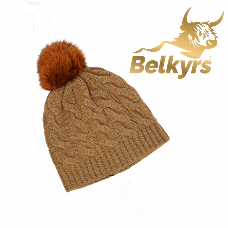 Čiapka má bohatý prírodný kožušinový brmbolec a krásny pletený vzor.